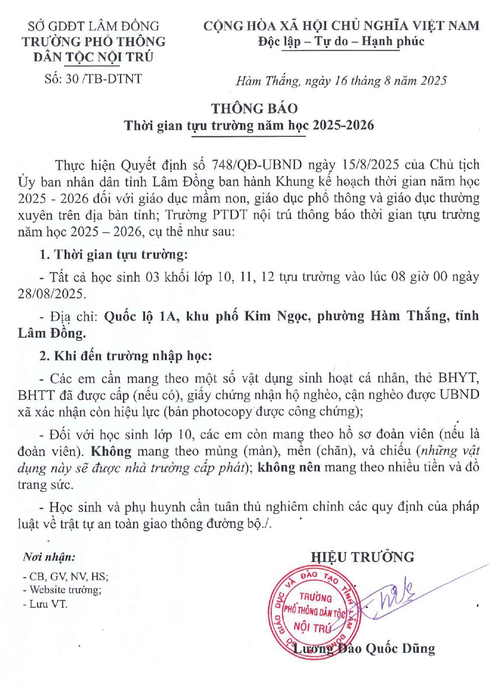 Thông báo về việc nhận gạo hỗ trợ đối với học sinh lớp 12 năm học 2024-2025